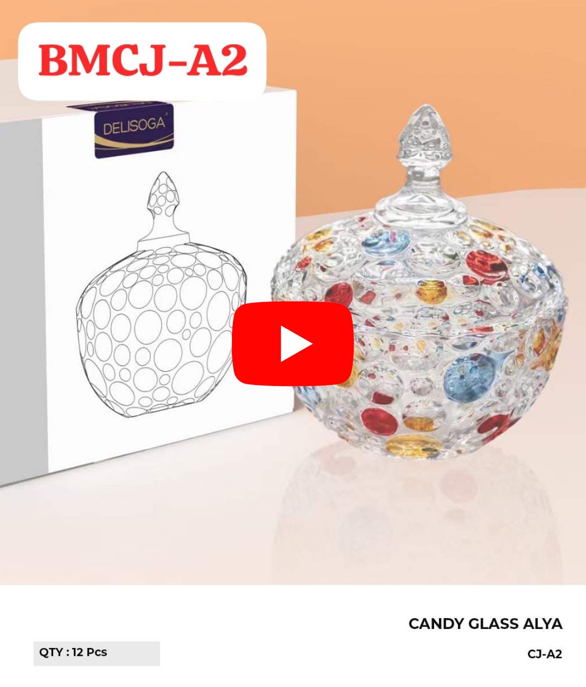 CANDY GLASS ALYA BMCJ-A2 DIAMETER 16CM (TINGGI 10.5CM TANPA TUTUP) ISI 12 PCS