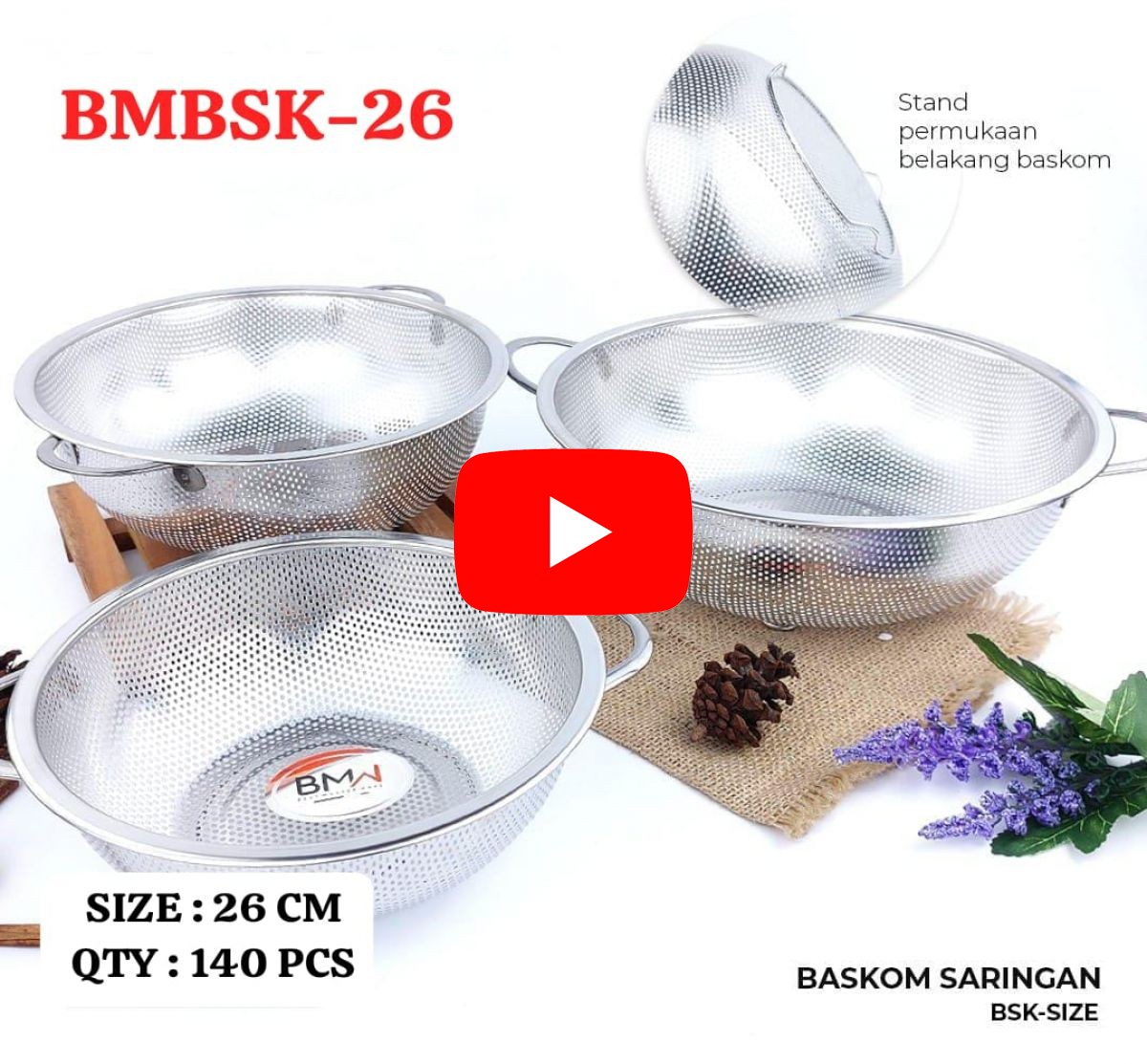 BASKOM SARINGAN BMBSK-26 SIZE 26CM ISI 140 PCS