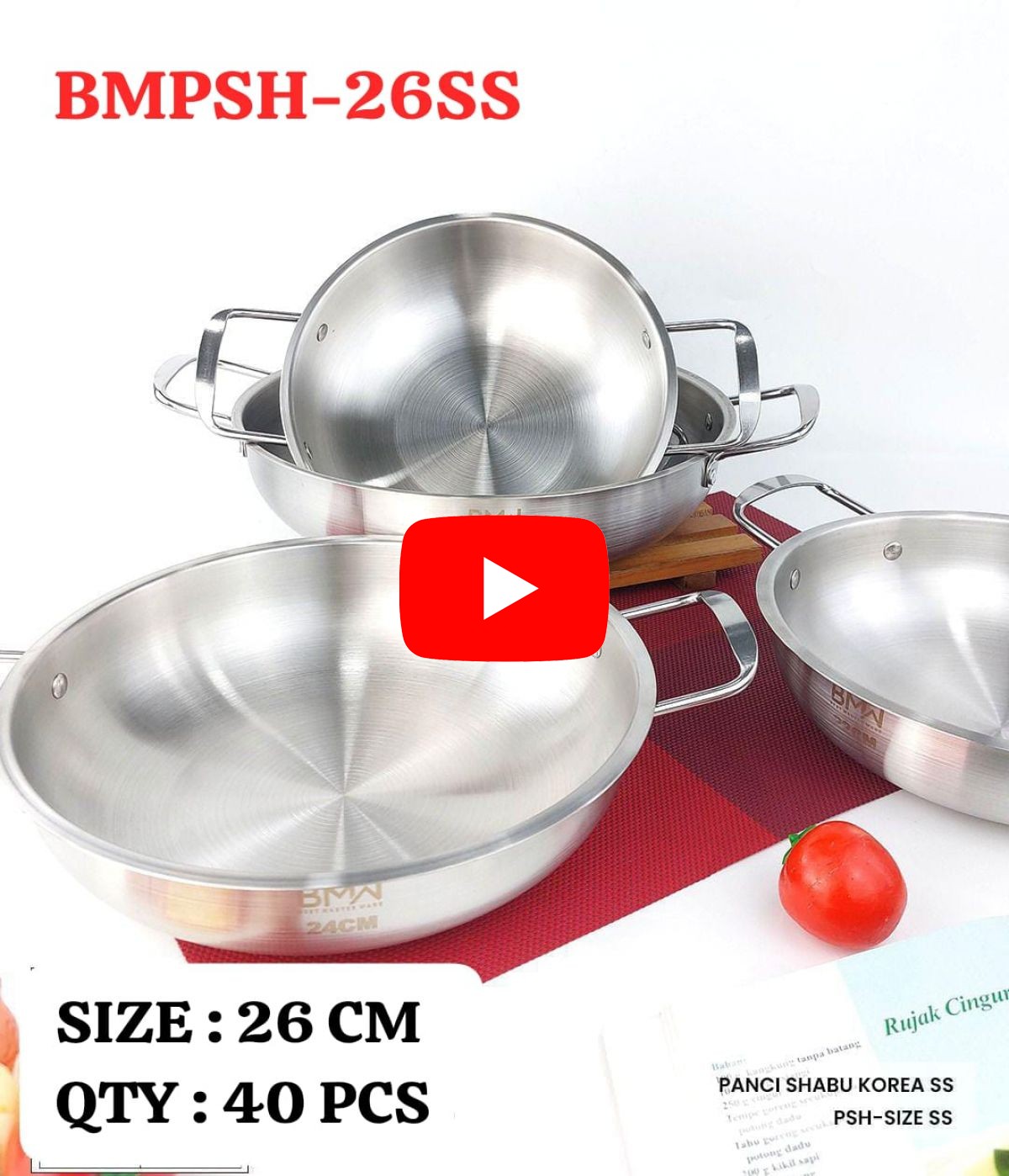 PANCI SHABU KOREA STAINLESS BMPSH-26SS SIZE 26 CM ISI 40 PCS
