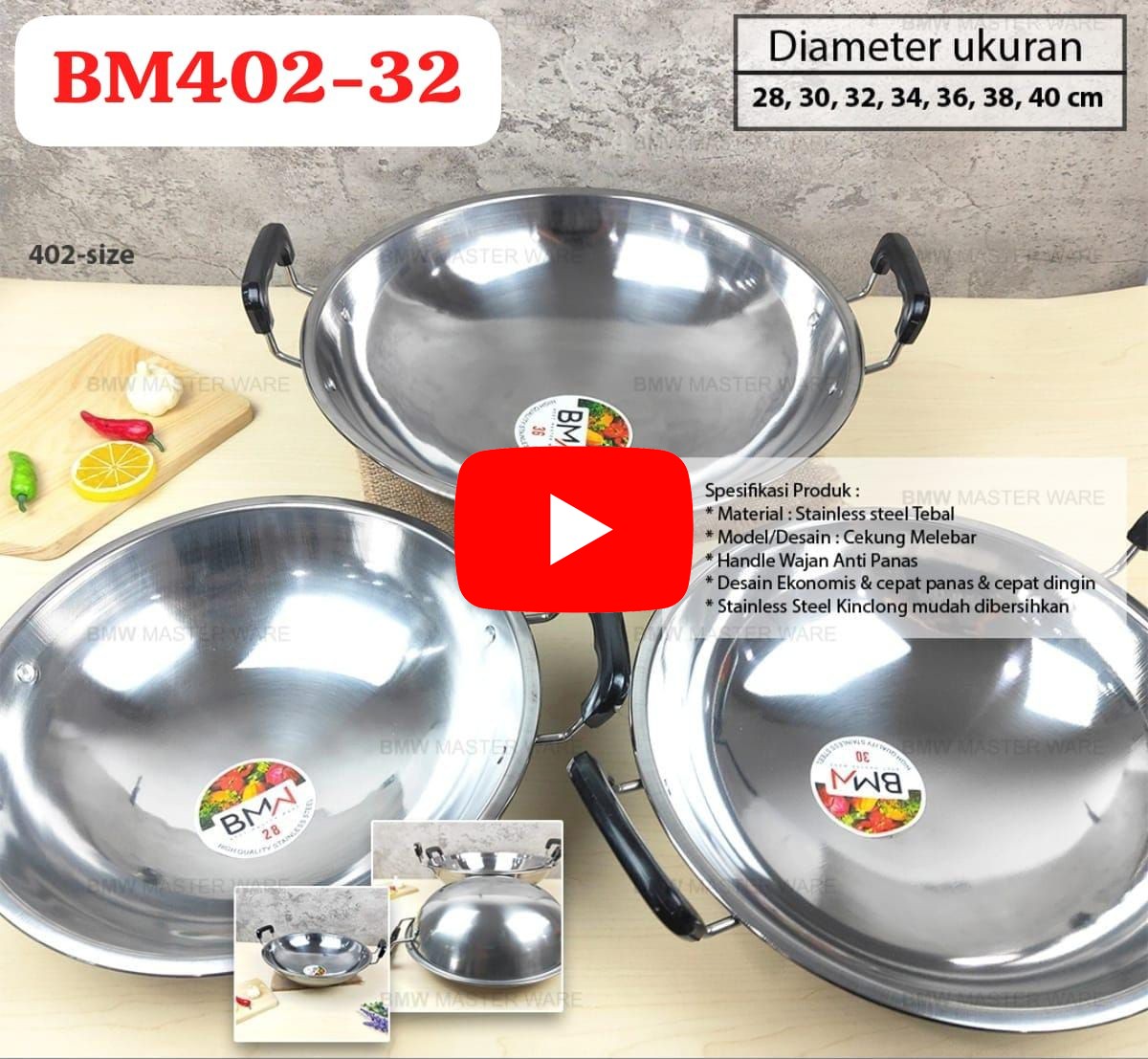 WAJAN STAINLESS BM402-32 SIZE 32 CM ISI 30 PCS
