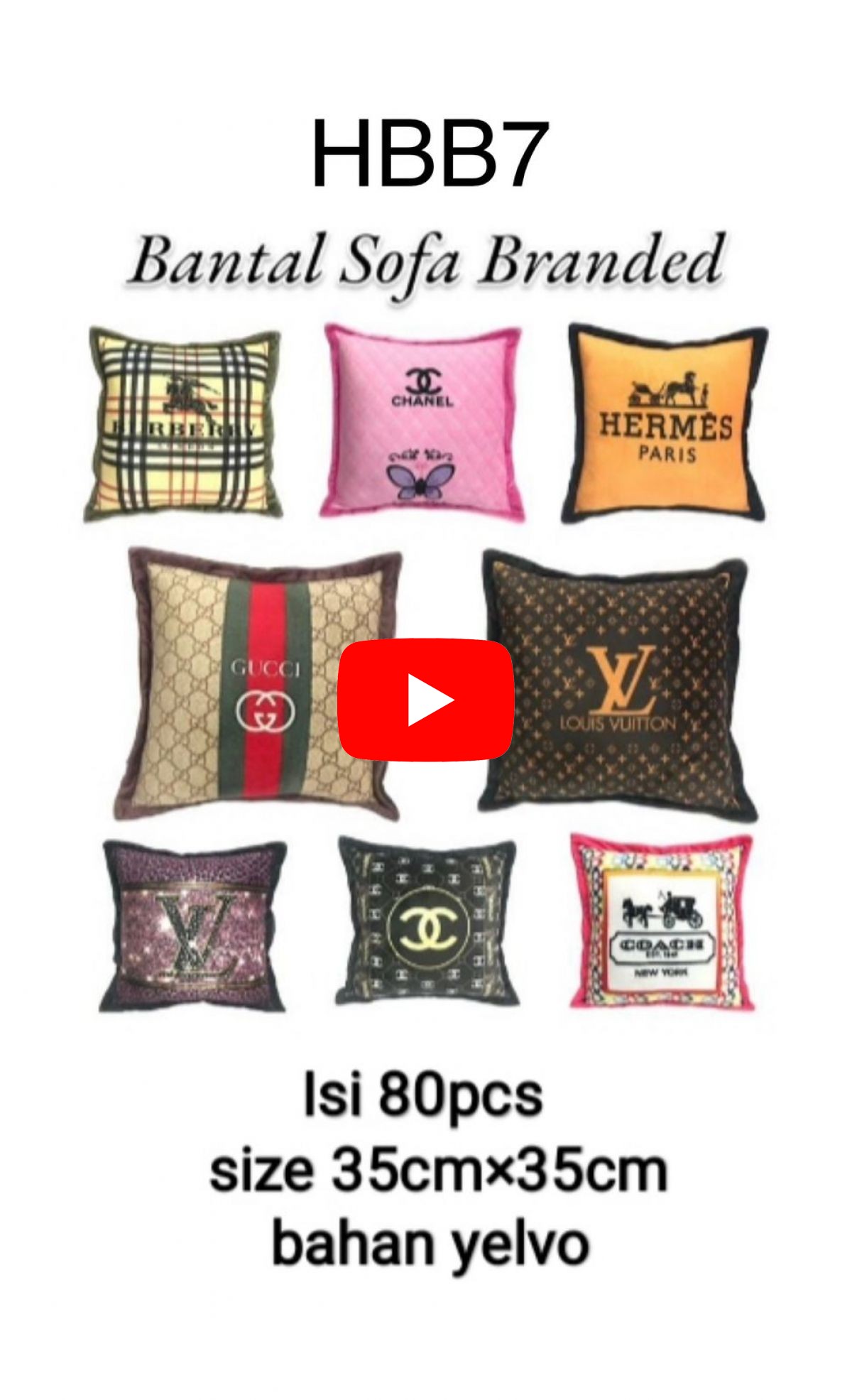 BANTAL SOFA PRINT BRANDED HBB7 BAHAN YELVO SIZE 35CM * 35CM ISI 80 PCS