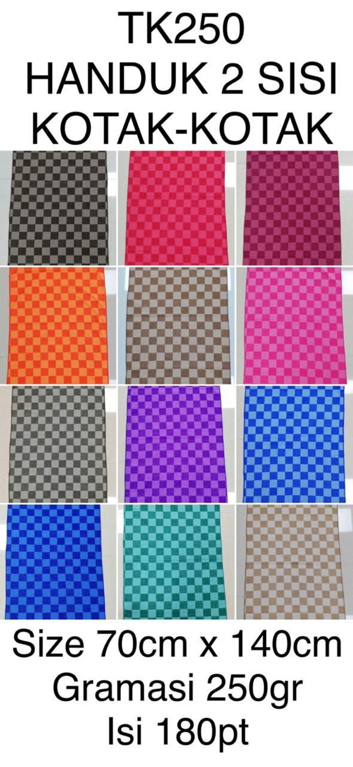 HANDUK KOTAK KOTAK TK250 SIZE 70CM * 140CM GRAMASI 250GR ISI 180 PCS