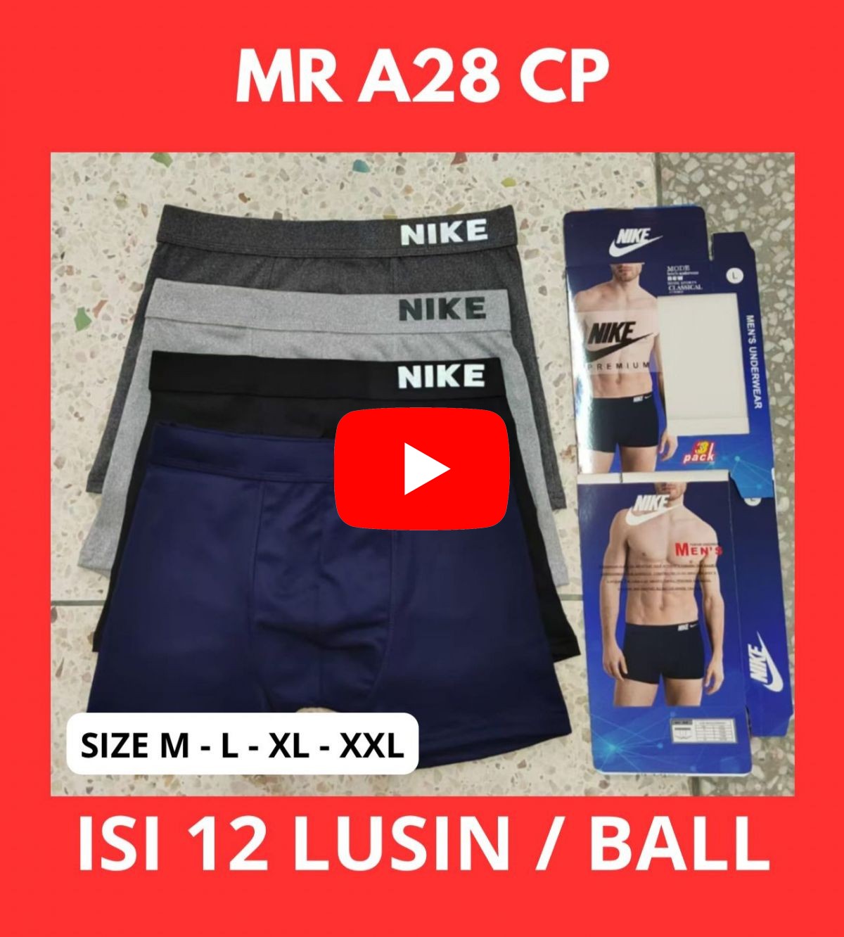 BOXER MR A28 CP SIZE M - L - XL - XXL ISI 12 LUSIN