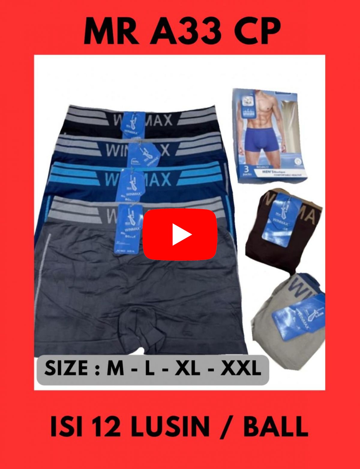 BOXER MR A33 CP SIZE M - L - XL - XXL ISI 12 LUSIN