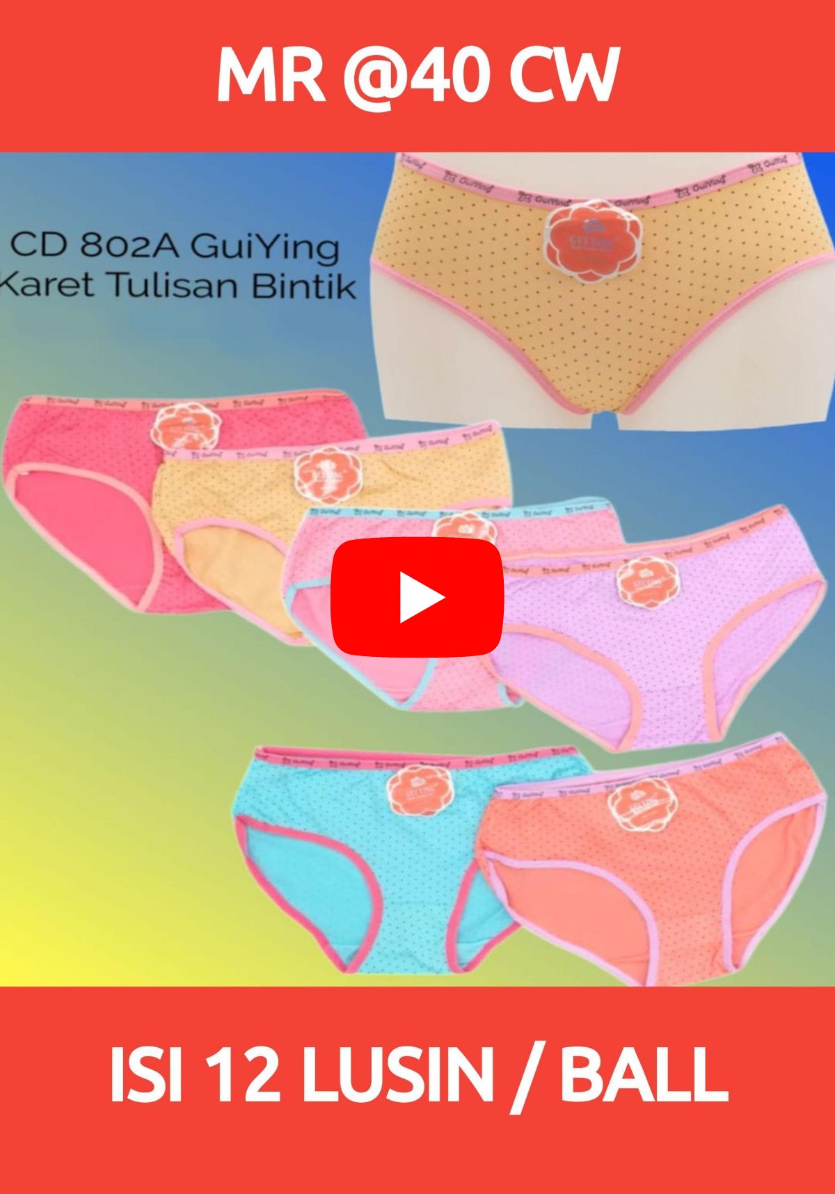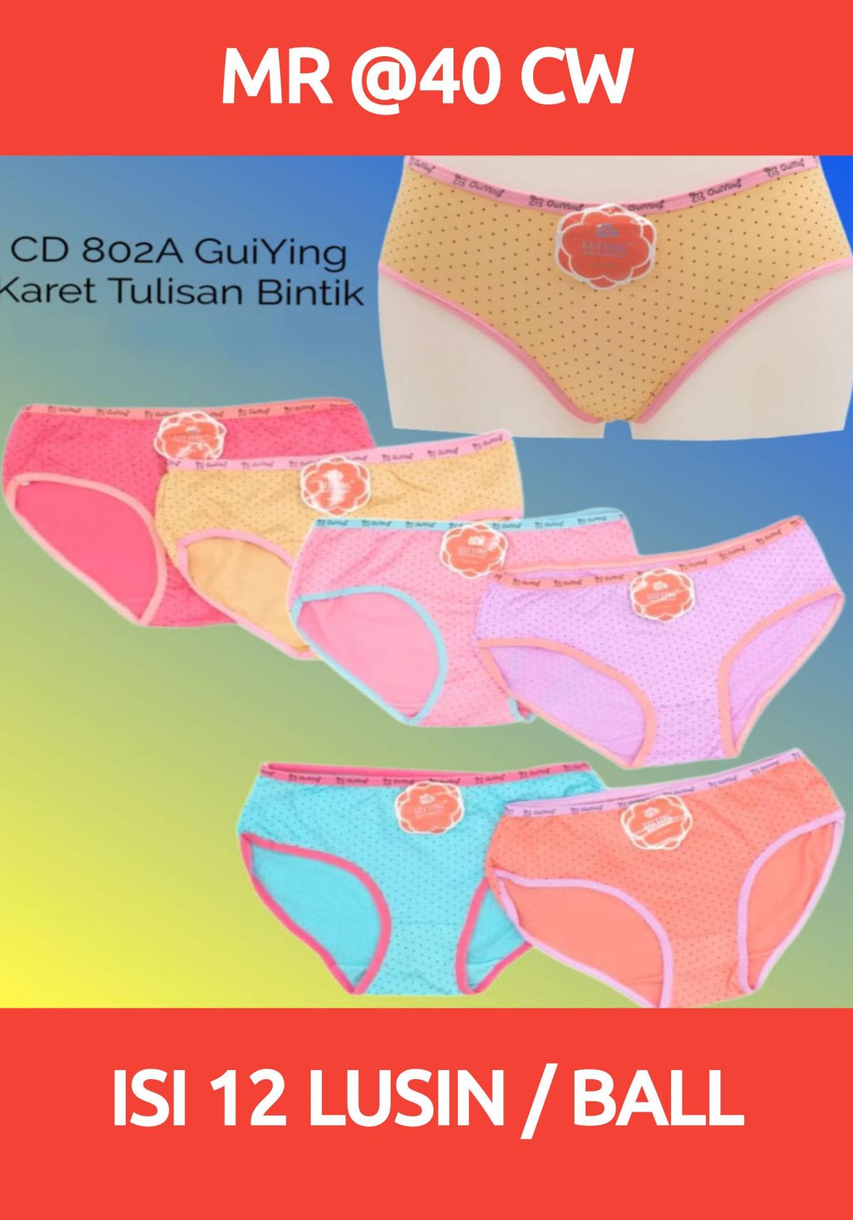 CELANA DALAM WANITA MR @40 CW KARET TULISAN BINTIK ISI 12 LUSIN