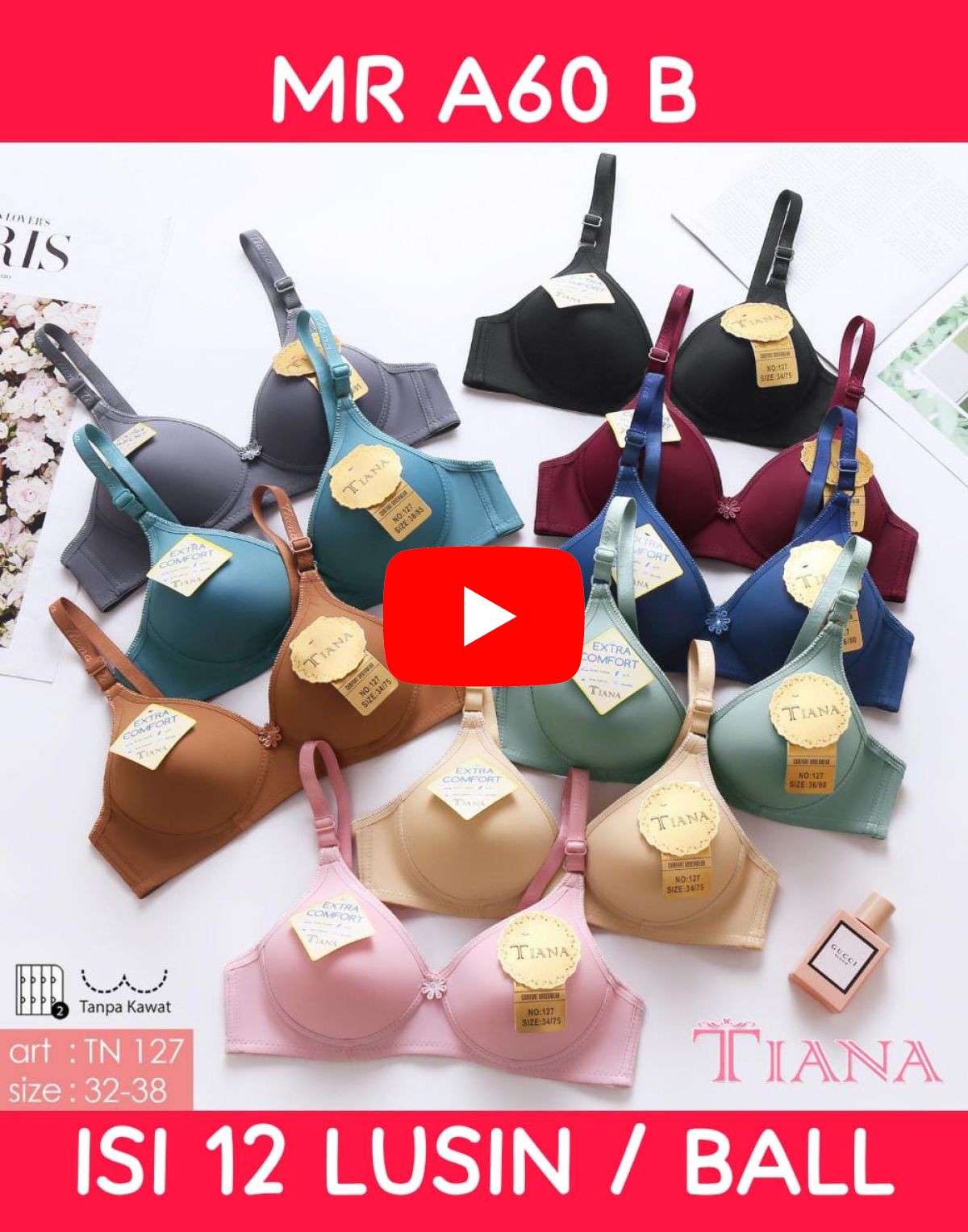 BH TANPA KAWAT MR A60 B SIZE 32 - 38 ISI 12 LUSIN