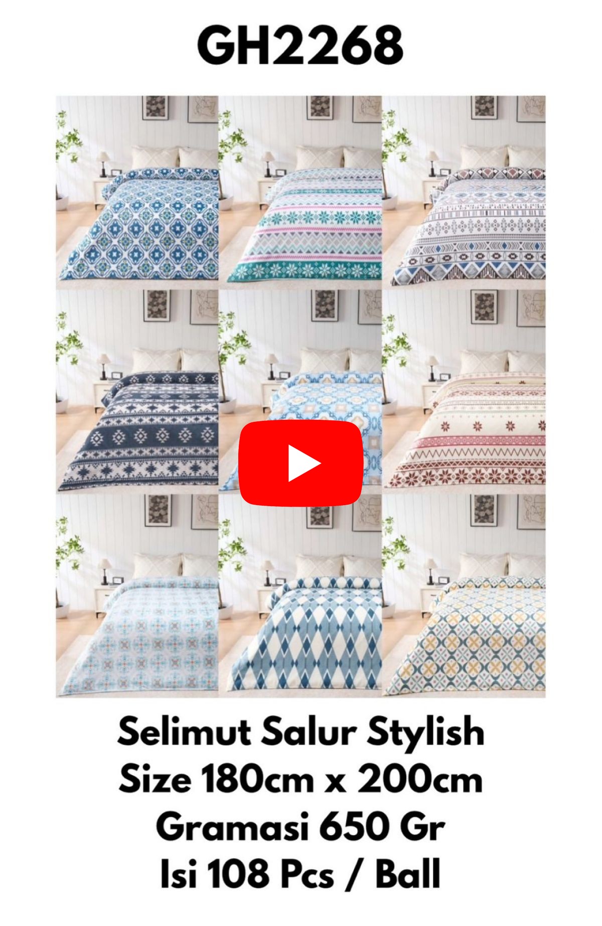 SELIMUT SALUR STYLISH GH2268 SIZE 180CM * 200CM GRAMASI 650 GR ISI 108 PCS