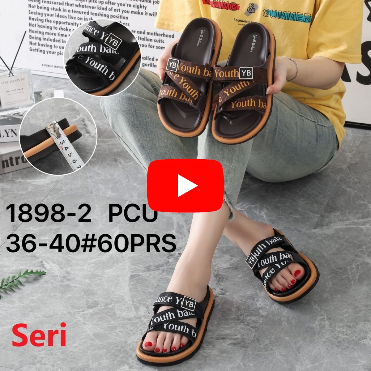 SANDAL 1898-2 SIZE 36 - 40 TINGGI 3.5 CM ISI 60 PASANG