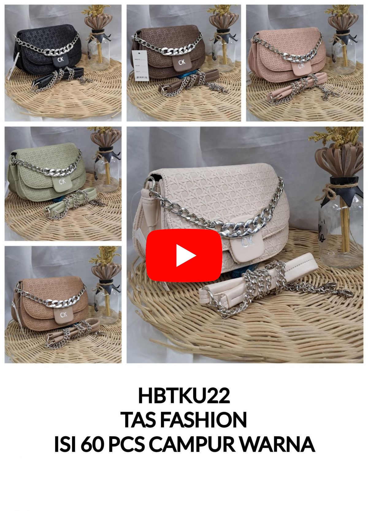 TAS FASHION HBTKU22 SIZE 20CM * 14CM * 15CM ISI 60 PCS ( CAMPUR WARNA )